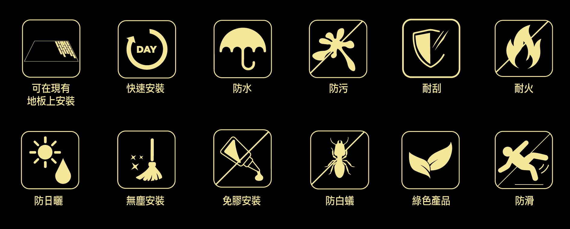 SPC石塑地板 的特点包括尺寸稳定性、防水性、高密度芯材的抗压痕性。 它可以安装在不同类型的地板基础上——混凝土、环氧树脂、陶瓷或现有地板。